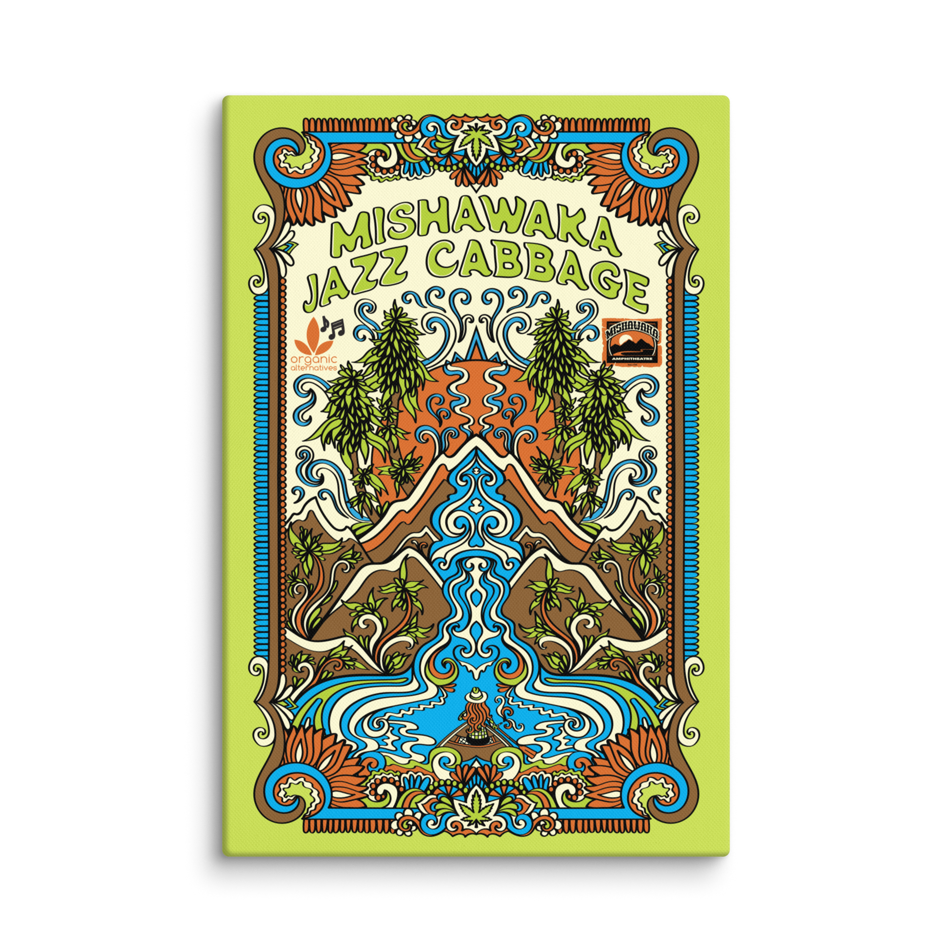 We’re excited to announce a fun collaboration that highlights the partnership between Mish and Organic Alternatives! Music and weed has always gone together like, well… music and weed! Introducing Mishawaka Jazz Cabbage, the Sativa cannabis cultivar that might just make guitar solos feel longer, beats hit harder, lights look brighter, and might even help you dance a little better (if you’re lucky)! Add this print to your collection today!